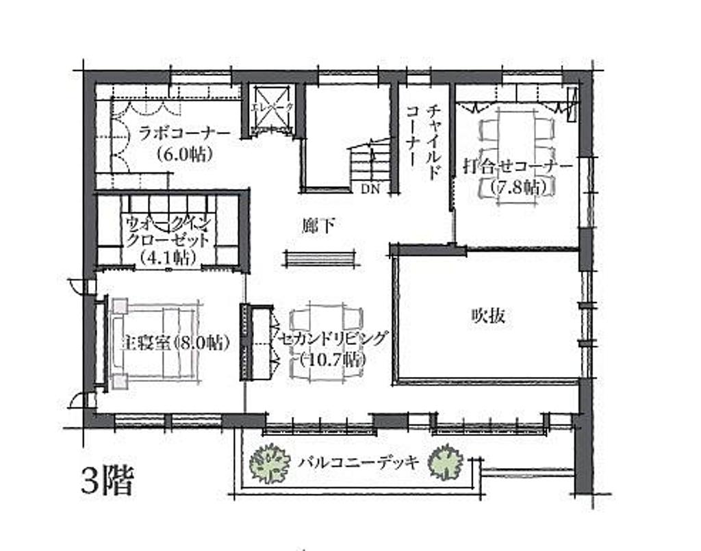 ハイウォールの壁で囲われたバルコニーはプライバシーを確保しつつ季節(jié)を感じることができます。