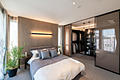 シックな色合いでコーディネートされた主寢室。床材カーペットは、保溫性?遮音性を高め安眠へと誘います。