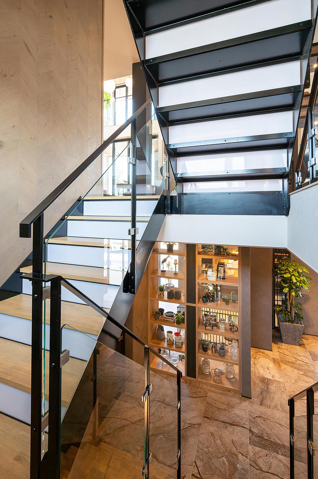 彫の深い外壁材Belxiix【ベルサイクス】とアクセントタイルが邸宅感を感じさせてくれます。プライベートバルコニーと吹き抜けが繋がる開放的なリビング、お籠り感のある隠れ書斎???階層によって異なる表情を持ち合わせたskye3をぜひご覧ください。
