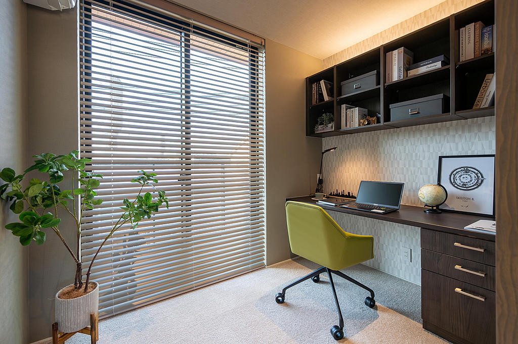 リビングのインテリアを高める化粧壁に隠された書斎は、おこもり感が高まります。