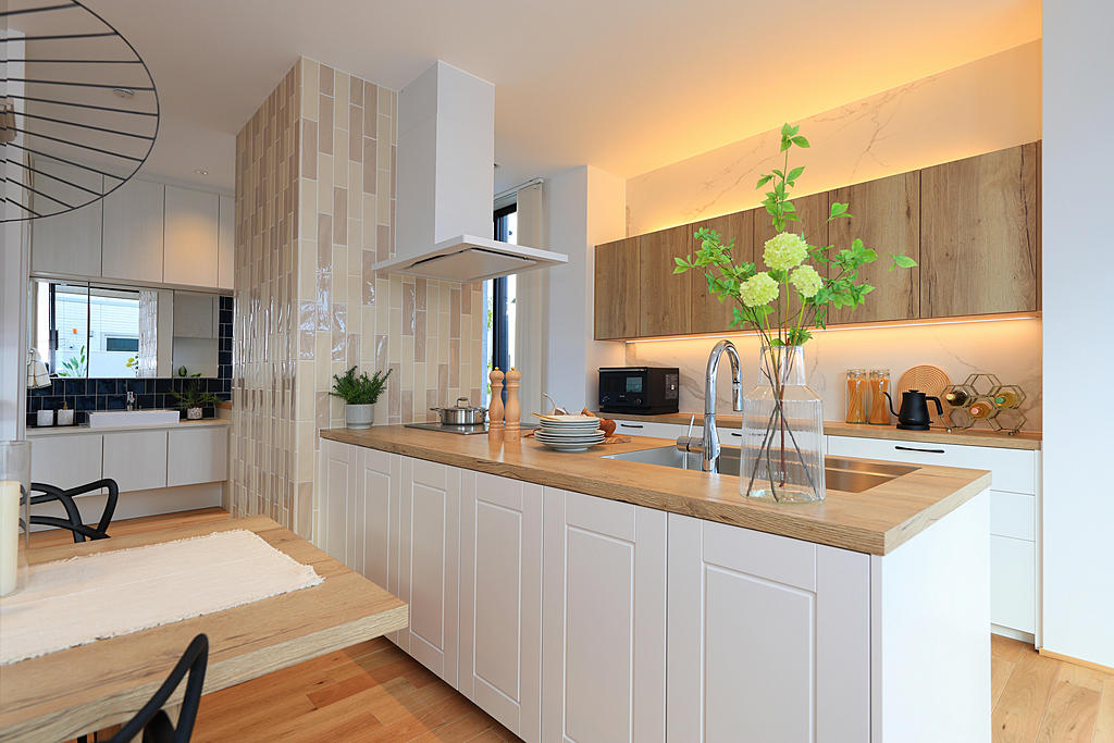 | 見どころ | 明るいリビング|子育て提案|収納提案|家事動線に工夫がある|防音室(奏でる家)|靜音室(やすらぐ家)|吹き抜け|外構(庭)に工夫がある |