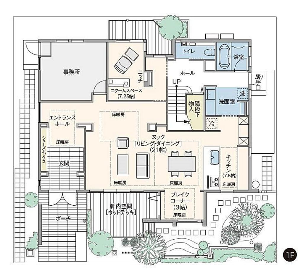 | 見どころ | 明るいリビング|子育て提案|収納提案|家事動線に工夫がある|広いバルコニー?デッキ |