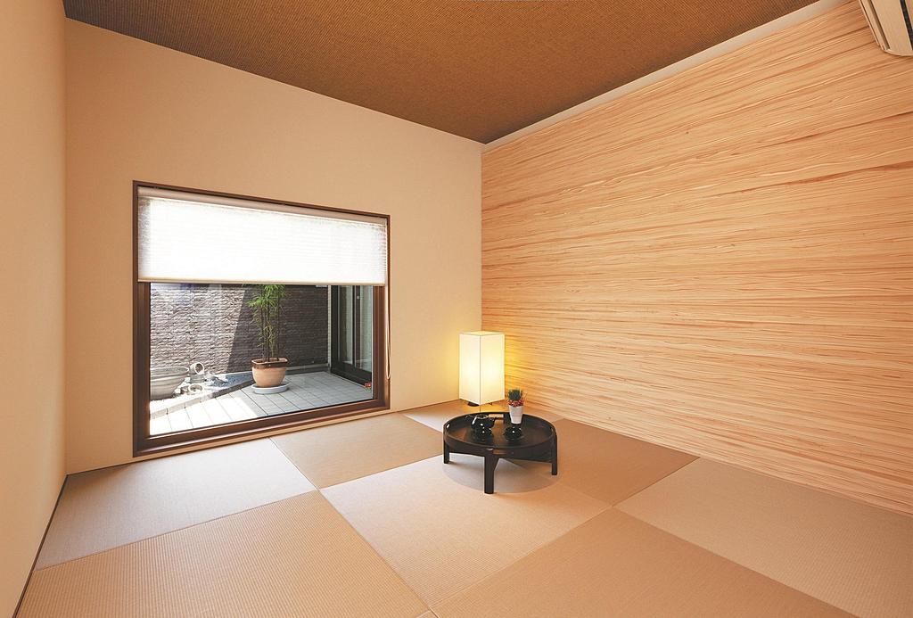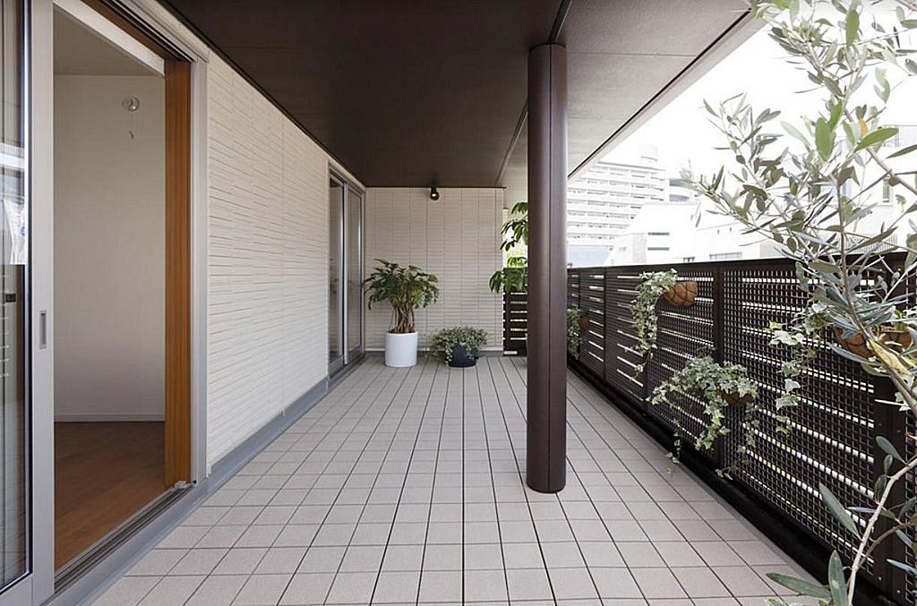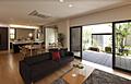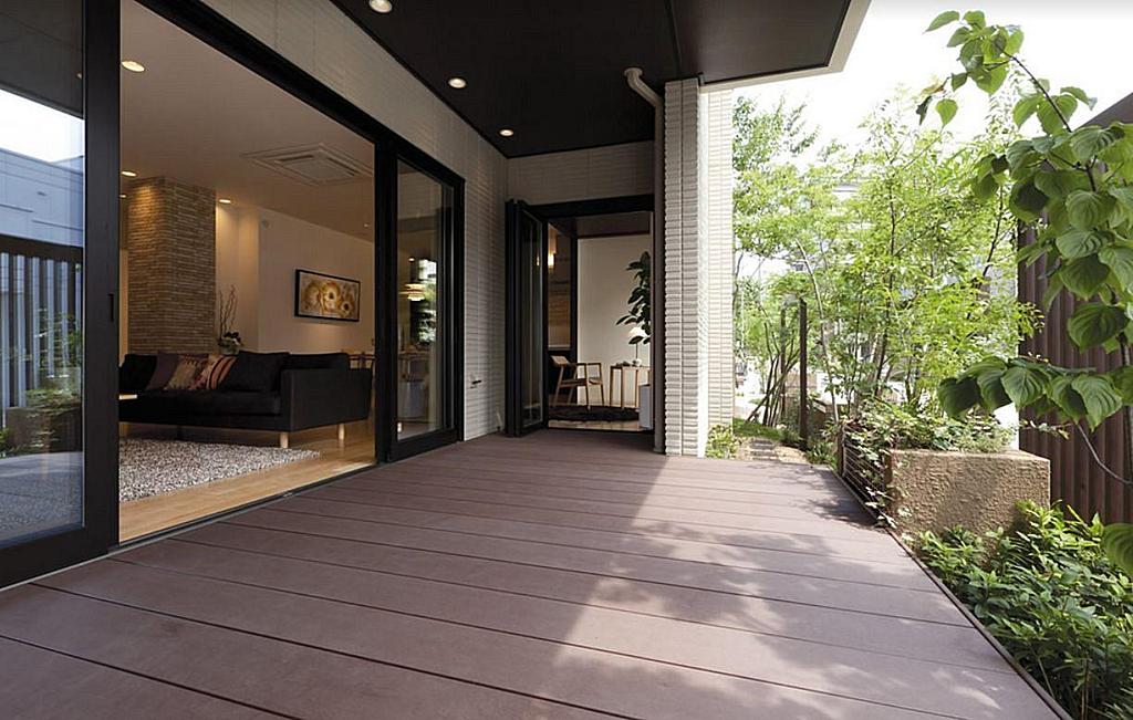 深い軒があり室內?室外の繋がりを感じられる開放的なリビング空間。