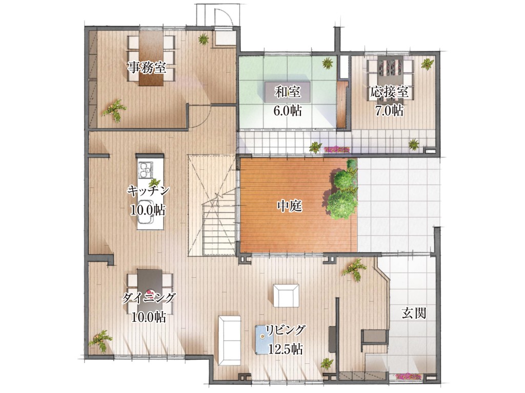 ゲートをイメージしたデザインと中庭を中心とした生活を表現(xiàn)しています。外は印象的な重厚感のあるゲートシルエット、インテリアはシックで落ち著いた色合いを多く取り入れ、形狀的にはソリッド感のある空間にしています。一階は中庭を囲んだLDK+和室の生活提案をご提案しています。また二階はシックなイメージをそのままで落ち著いた主寢室及び水廻りの生活提案をご提案しています。ご來場、お待ちしております。