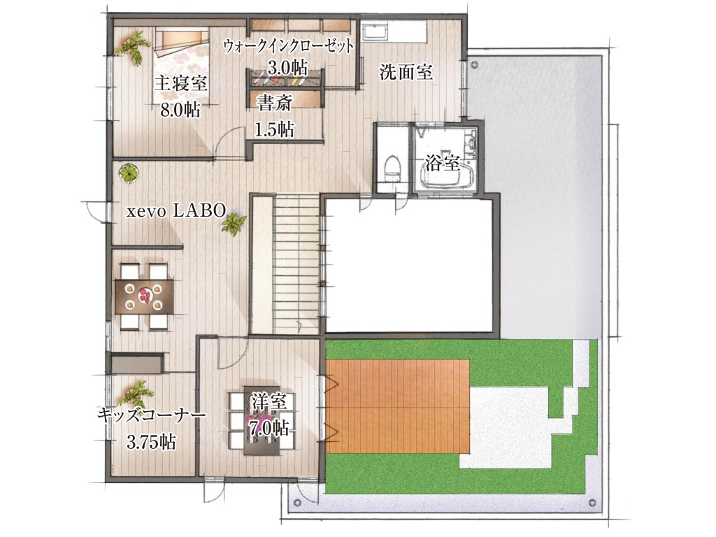 | 見どころ | 明るいリビング|子育て提案|収納提案|家事動線に工夫がある|外構(gòu)(庭)に工夫がある|外観タイル貼り|広いバルコニー?デッキ |