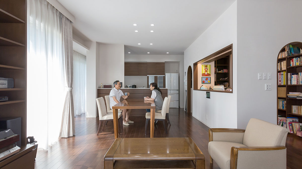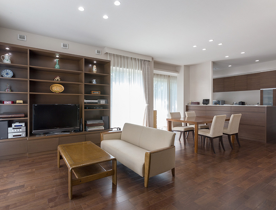 以前のお住まいのマンションに伺い、お手持ちの家具のサイズを測(cè)って寫真に撮り、蔵書の量も把握して、すっきりと美しく収まるプランをご提案しました。また、防音室仕様のピアノ教室をつくるに當(dāng)たっては、総合技術(shù)研究所から音響の専門家に來てもらい、専門的な説明をしてもらいました。スタディースペースを設(shè)けたリビングにいつもご家族が集まり、自然に會(huì)話が弾むお住まいになり、大変ご満足いただいています。