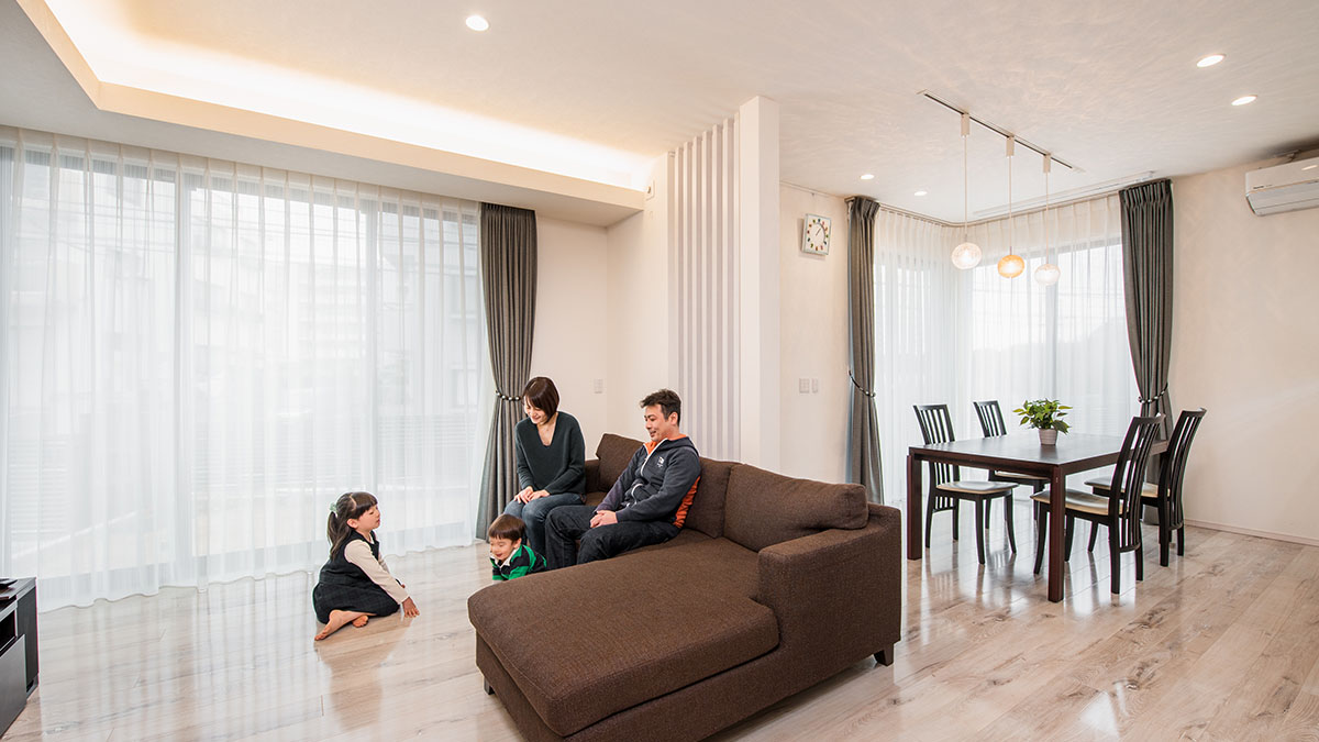 スタッフのみなさんは対応がスピーディーで、連攜も良好。常に情報共有されているから、どなたにでも役割を考えずに相談できて、家づくりがスムーズに進みました。たとえばインテリア擔當の中嶋さんに設計のことを伝えたら、鈴木さんにすぐ連絡がいき、ほどなくフィードバックされます。また、家族的な和気あいあいとした雰囲気ながら、行動はプロ中のプロ。質問にその場で回答してもらえるので、最後まで安心感がありました。