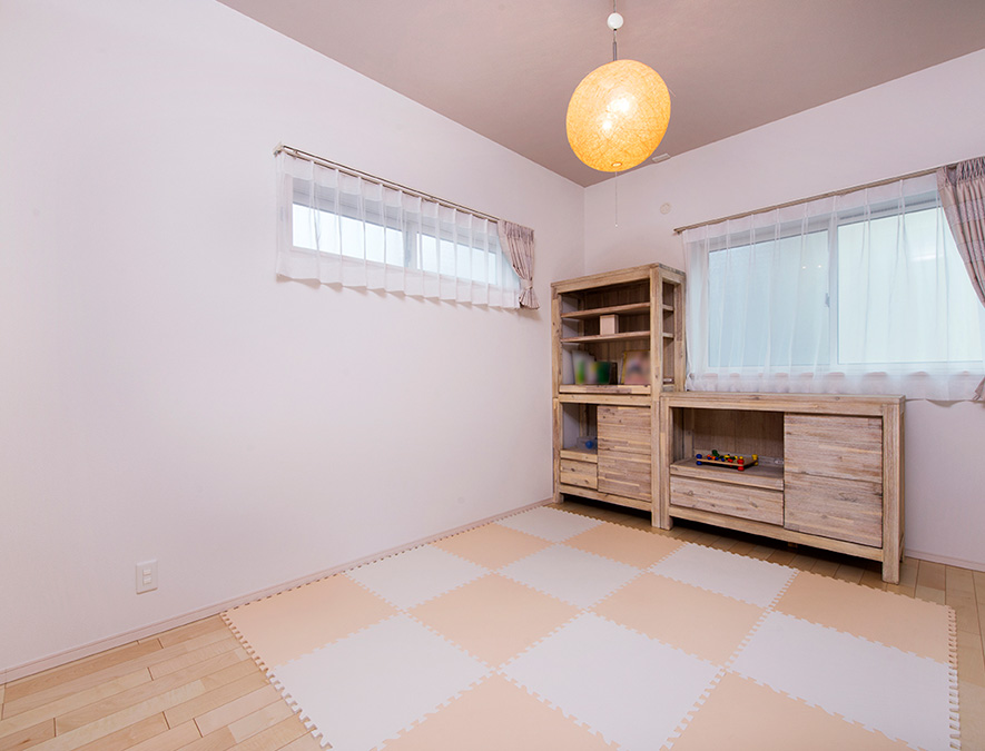 娘さまの部屋は、クロスやカーテンともに優しい色合いでまとめ上げ、お手持ちの家具がよく映えています?!附瘠夏铯芜[び場所として使っています」とIさま。