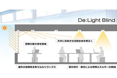 照明エネルギー削減や明るく快適な空間づくりを実現する、自然光利用をした獨自ブラインド