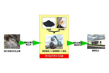 鉱物油(油)による汚染土壌を、油分解菌と活性炭の能力で吸著分解できる土壌改良技術