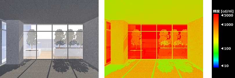 環境解析では、建物の3Dモデルを用いてシミュレーションを行い、建物の環境性能を可視化?數値化します。そのうち、光環境解析では、自然光および照明光から建物の室內空間の光環境を高精度にシミュレーションできるため、設計段階から環境性能を把握し、最適な仕様の選定や形狀の決定が可能になります。また、複數の設計案を比較する場合や、設計案の詳細な仕様や形狀を決定する際の根拠にもなります。