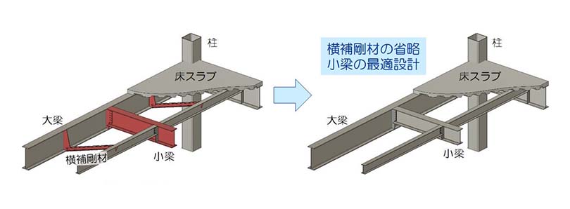 従來工法(左図)と橫補剛材省略工法(右図)