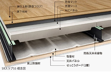 構造への負擔が軽減できる、軽くて遮音性に優れた遮音床技術