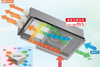 業界最高水準の溫度交換効率の第一種熱交換型換気システム