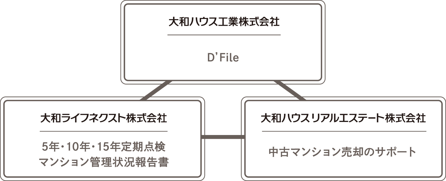 定期點検や補修の履歴情報を「D’File」に保管し、売主さまから買主さまへ引き継がれます。