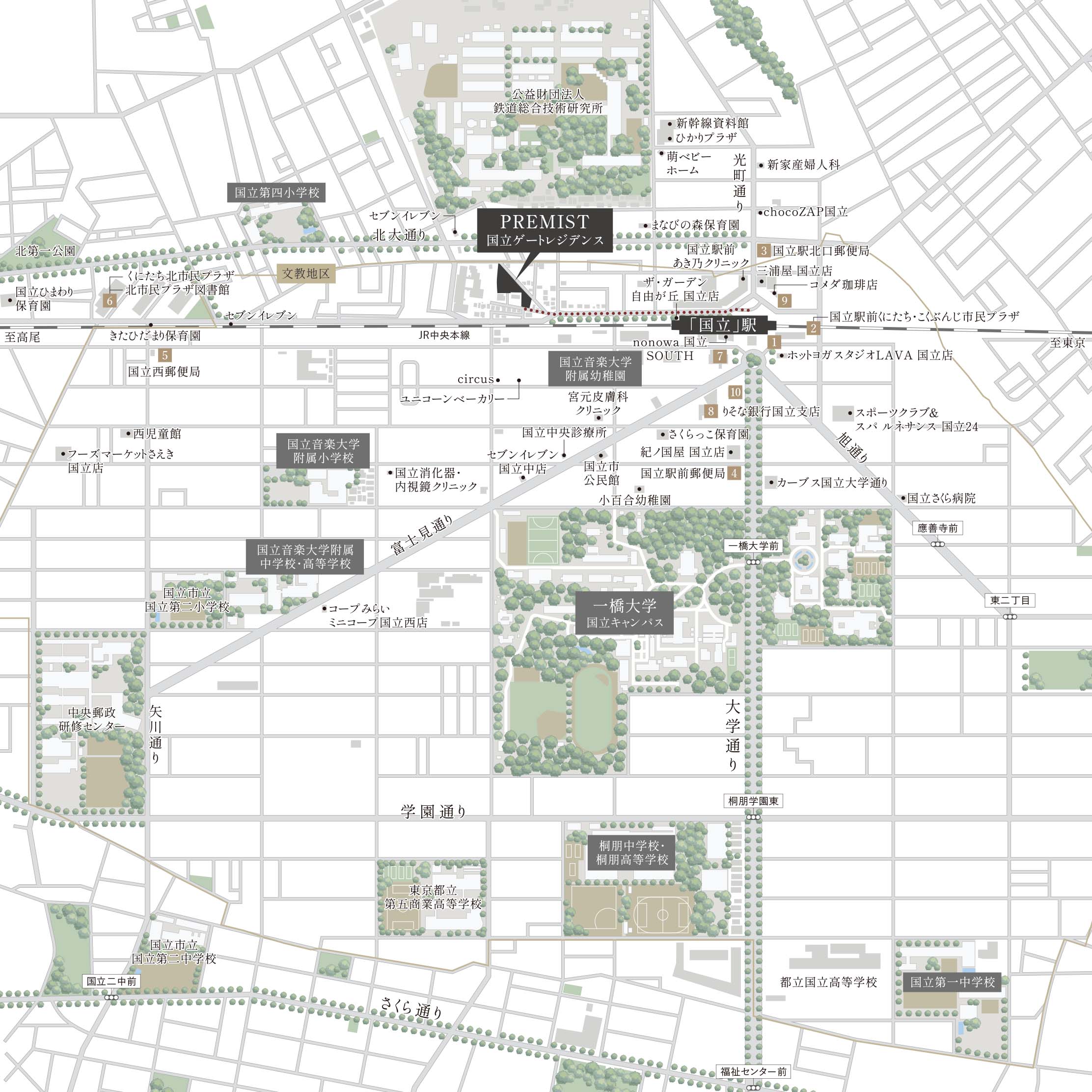 舊國立駅舎(徒歩8分?約590m)大正末期より理想的な學園都市を目指した開発が進められ、1952年には市民と學生の協力により「文教地區」に指定された國立。理想を追求してきた気風は今も変わることなく、この街の魅力を守り続けています。