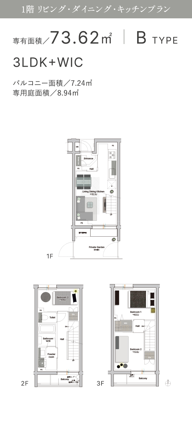 「プレミスト國立ゲートレジデンス」は、個性豊かな全16タイプの3階建てメゾネットプランをご用意。吹抜けやルーフバルコニー、セパレートキッチンなど、ライフスタイルや好みに応じてお部屋をお選びいただけます。