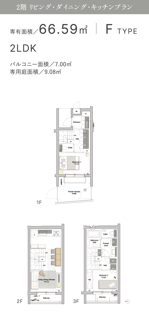 ※掲載のメゾネットプラン斷面図(Bタイプ)は設計図書を基に描きおこしたもので、建物內部が分かりやすいように一部の壁をくり抜いて表現しており、形狀?色等は実際とは多少異なる場合がございます。また、家具?調度品等は販売価格に含まれません。