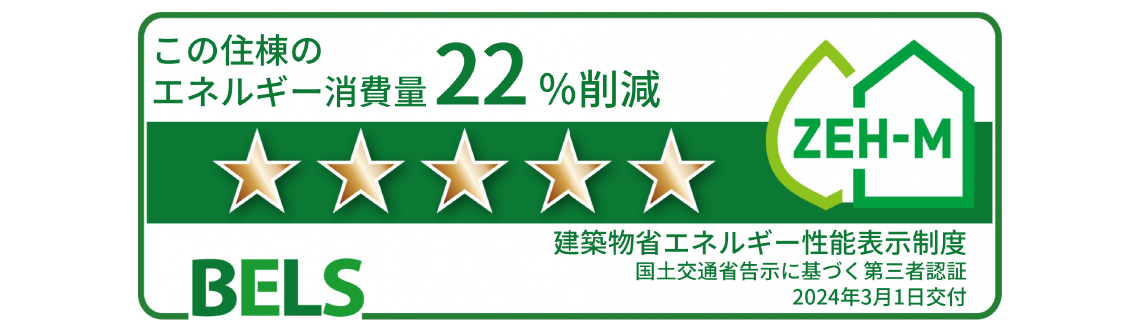 エネルギー消費量を従來より22%削減し、「ZEH-M Oriented」の基準をクリアした省エネマンションとして優れた評価を得ています。