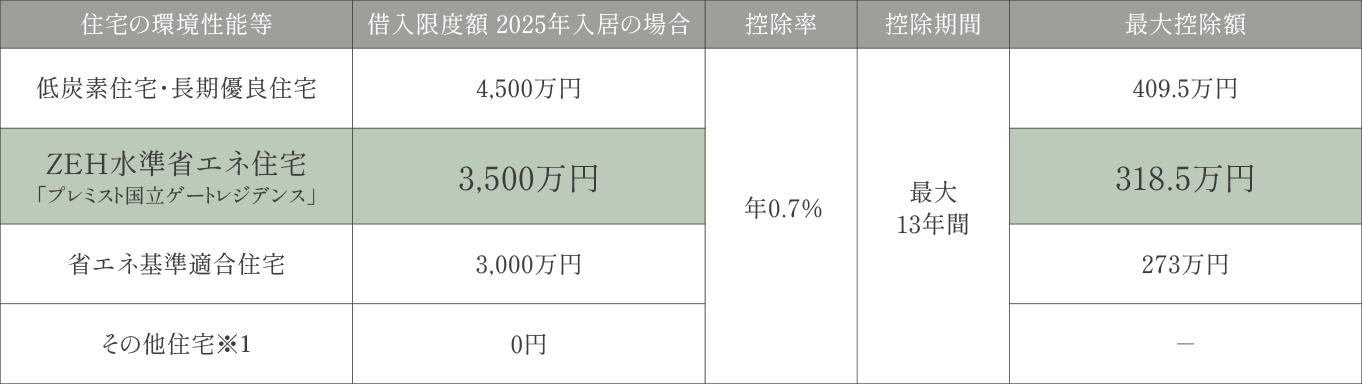 ZEH水準省エネ住宅は省エネ基準適合住宅やその他の住宅に比べて、住宅ローン減稅が拡充されています。例えば2025年に入居の場合、新築マンションは13年間で最大318.5萬円が控除されます。
