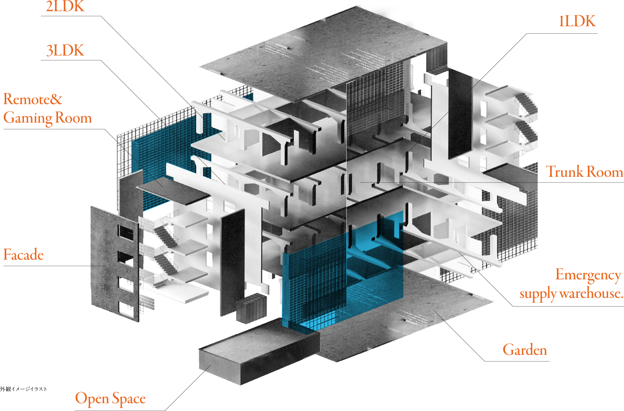 インダストリアルデザインをコンセプトにしたウォールアートがある美しいラウンジスペースやビジネスだけでなく趣味や遊びも謳歌できるホビースペース、リモート&ゲーミングルームなど、自分らしく日々を愉しむ共用空間を目指しました。安全面に配慮した歩者分離で出入り口やグリルシャッター、車寄せやトランクルームなど、快適な暮らしを?qū)g現(xiàn)する充実の共用空間をご用意しました。