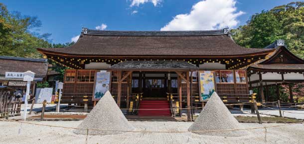 賀茂別雷大神を祀り、厄除けや必勝の神として信仰されている。境內(nèi)は世界遺産に登録され、國(guó)寶2棟や重要文化財(cái)41棟を有し、自然豊かな環(huán)境はパワースポットとしても知られる。