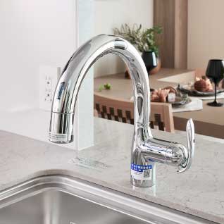 引き出して使える便利な浄水機能付シャワー水栓。