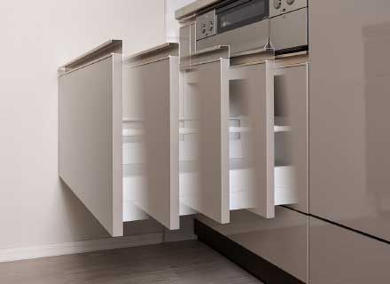 ソフトクローズ機能付きスライド収納