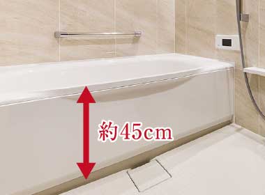 低く抑えた浴槽のまたぎ高