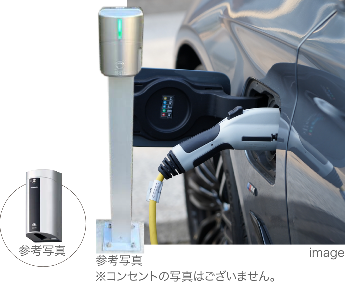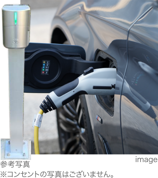 入居者様がお持ちの?載充電ケーブルを使って充電していただけるEV充電設備を來客用駐車場(コンセントは3基)に設置。他に、離れがある住戸の専用駐車場や屋根付きの平面駐車場にはEV充電コンセントをご用意しました。