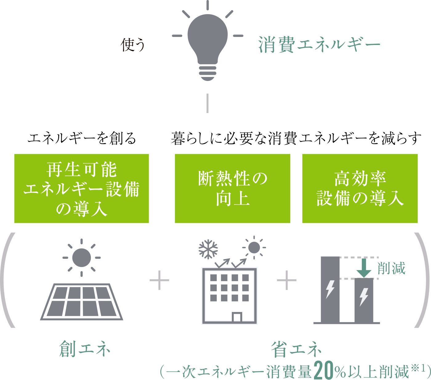 ※1 一次エネルギー消費量削減率は、平成28年度省エネ基準による「暖房」「冷房」「換気」「給湯」「照明」の基準一次エネルギー消費量との比較です。