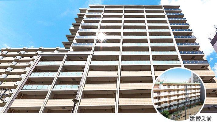 - ● 再開発事業の権利者の受け皿として建設された分譲住宅の建替事業