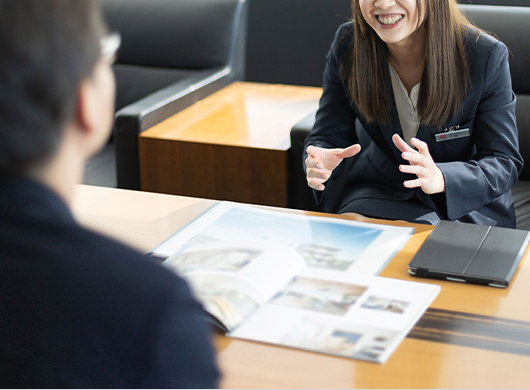 お客さまのもとに足繁く通い、市場(chǎng)調(diào)査や外部組織からの協(xié)力も得ながら、じっくりと信頼関係を築いていくことが大切な仕事。何度も打ち合わせを重ねてお客さまに信頼していただき「あなたに相談してよかった」「〇〇さんだから任せる」と言われることは、大きなやりがいです。