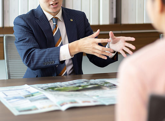 商品の特徴を訴求する広告物の制作や、お客様との商談など、関わる業務は多岐にわたるので、提案力や接客力といった幅広いスキルを磨けます。また、情報感度を常に高く持ち、宅地建物取引士などの資格を取得することで、専門知識も身に付けていくことができます。