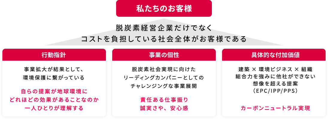 世界的に脫炭素への流れが加速し、再生可能エネルギーへのニーズが高まる中、EPC事業(再生可能エネルギー発電所の設計?施工)、PPS事業(電気小売事業)、IPP事業(発電事業)の3つの事業を中心に、エネルギー面からお客様に価値を提供する事業を展開。また、中期経営計畫の3つの経営方針の一環として「原則すべての新築建築物の屋根に太陽光発電の設置」の取り組みを當社だけではなく、グループ全體でスタートし、再生可能エネルギーのさらなる利用拡大に貢獻しています。