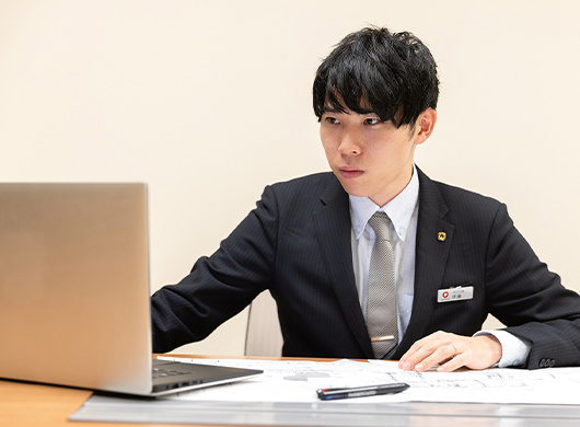 大學では住宅設計を中心に、まちづくりや都市計畫の分野を専攻しており、學んだことを活かしたいと考え、建築系の企業に狙いを定めて就職活動を行っていました。その中でも大和ハウス工業を選んだ理由は、事業領域の幅広さです。戸建住宅だけでなく、賃貸住宅や商業施設、オフィスビル、物流施設、工場に至るまであらゆる建築物に攜わっているこの會社なら、設計士としての可能性も、世界観も、広げていけると感じました。現在、私が手掛けているのは、戸建住宅の設計です。設計は大きく二つの業務に分かれており、一つはお客様のご要望を反映し、家づくりの方向性を示す「基本設計」です。