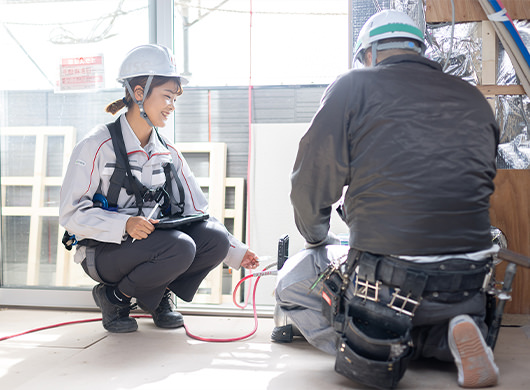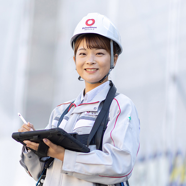 集合住宅施工は、現(xiàn)場監(jiān)督として、お客様?職方さん達の真ん中に立ち、工事を指揮する役割です。まさにラクロス部時代のアタックリーダーのような立場です。大和ハウス工業(yè)の物件は、頑丈さが大きな特長です。構造が複雑で、必要な資材の種類や數(shù)が多く、検査項目も多岐に渡ります。當然ながら施工に関わる全員の力を合わせなければ、工事は上手く進みません。さまざまなハードルの中でも、お客様が絶対に妥協(xié)できないポイントは何かをしっかり把握することや、その想いを形にするために、職方さんの技術を最大限に引き出せるようなマネジメントをすることを心がけています?,F(xiàn)場でのチームづくりは、建物づくりに欠かせません。