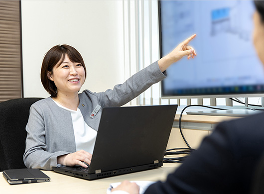 入社時、部署には女性社員は私だけでしたが、その後増えて現在は私を含めて3名になりました。入社區分や性別に関係なく仕事に打ち込める環境があると感じています。仕事の進め方や設計のアイデアなど多くの刺激をもらえ、部署の中だけにとどまらず、全國の事業所に勤務している多くの設計者同士とも情報共有できる仕組みがあり、これは大きなネットワークをもっている大和ハウス工業の強みだと感じています。