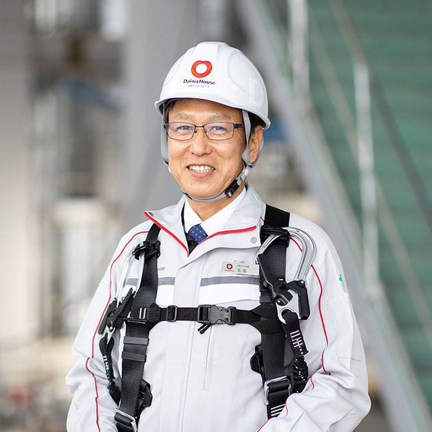 大規(guī)模建築だけに、お客様をはじめ、社內(nèi)の営業(yè)や設(shè)計擔當者、協(xié)力會社の皆さんなど関係者の人數(shù)も多く、経験したことのない仕様や用途の建築物、考えたこともなかった施工上の留意點に直面することもあります。そのたびに大和ハウス工業(yè)の現(xiàn)場所長としての責任の大きさを感じますが、物件が完成したときの大きな達成感とともに、技術(shù)面での自分の成長に手応えを?qū)g感することができています。思い出深い仕事は、國際的な競技會の仮設(shè)會場の建築を行ったときのことです。國家的規(guī)模のプロジェクトだったため、全國の大和ハウス工業(yè)の事業(yè)所から100名ほどの技術(shù)者が集まり、タイトなスケジュールの中で工事を進めていきました。一生に一度あるかないかという仕事だっただけに、無事に終わった時は感無量の思いでしたね。