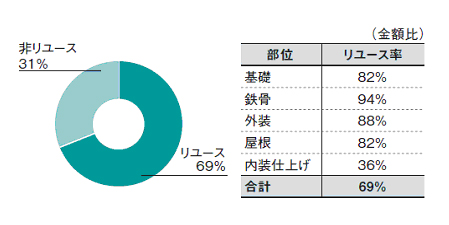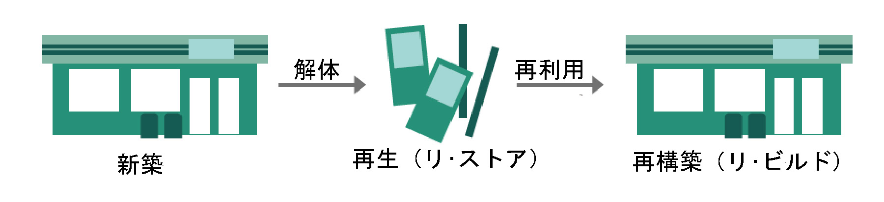 「リ・ストア&リ・ビルドシステム」は、使用可能な状態であるにもかかわらず、使われなくなった建物が短期間で廃棄処分になることを避け、資源を有効活用する物販・飲食店舗向けのシステムです。 建物を構成する部材を、分解・再生・再利用が容易な仕組みとし、建物を別の場所に移設して再利用することを可能にしました。また、主要な部材を工場生産するため、建設現場での廃棄物量も削減しました。 現在、全国展開のコンビニエンスストアや飲食店舗など計51棟(※2)の建設実績があります。今後もこのシステムを展開するとともに、環境に配慮した取り組みを継続していきます。