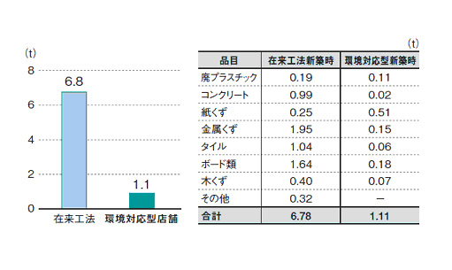 ●新築時の現場発生廃棄物量の比較(物販店舗167.4㎡)