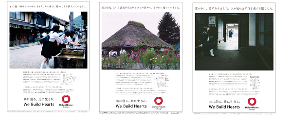 大和ハウスグループでは、「人・街・暮らしの価値共創グループ」として、新たな価値を創り、活かし、高め、すべての人が心豊かに暮らせる社会を目指しています。事業を通じて社会と共にあること、そして商品サービスを通じ、暮らす人と共にあること。この「共に創る 共に生きる」の造語である「共創共生」の姿勢を持ち続け、誠実に社会と向き合うことが大切であると考えています。 そして今回、お客様に当社の理念をご理解いただけるよう、わかりやすいメッセージで広告を作成、TVCF放送・広告掲載を行った結果、栄えある受賞に至りました。 今後もお客様一人ひとりとの絆を大切にし、生涯にわたり喜びを分かち合えるパートナーとなって、永遠の信頼を育み、真にお客様のために、心から喜んでいただける「商品・サービス」の提供に努めていきます。
