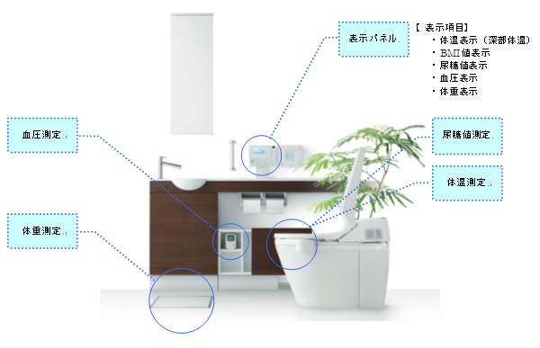 両社は2005年4月、「尿糖値」「血圧」「體脂肪」「體重」の4つの機能を測定することができる『インテリジェンストイレ』を共同開発し、大和ハウス工業株式會社より既に約1萬臺を販売。お客さまの健康維持?健康管理をサポートしてきました。