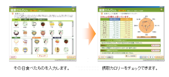 パソコンソフト『健康かんりくん』は、「食生活管理・運動管理・健康チェック・健康診断情報」などの、家族の健康づくりに役立つ機能が充実しています。