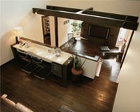 「ロースタイルフロア」は、段差を活かした居心地の良いくつろぎ空間です。そこには木の温かみを感じとれる梁をあらわす高天井にすると最大3mの広がりのある1つの空間をつくることができます。 また、床の段差によって収納や土間利用など新しい空間をつくることも可能です。 |