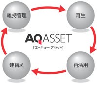 ●「AQ ASSET」(※7) お客さまとのつながりを強化するため、当社グループは、今後提供するストック向けの商品・サービスの総称を「AQ ASSET」として統一しました。 今後進展していく「住まい循環型社会」を見据え、お客さまの「建てる」「維持管理する」「リフォームする」「建て替える」「売買する」等、今まで当社のグループ各社で行っていたサービスを統一させることにより、「家」の資産価値を維持するお手伝いをします。 |