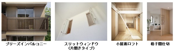 ■商品特長 1.「風」を活かした提案 「xevo」は元来、高い断熱性能を有しており、夏場の暑い時期でもわずかにエアコンを使用するだけで、快適に過ごすことができます。さらに、今回の新商品「xevoFU~風~」では、通風を利用して、よりエコな暮らしを実現するため、それほど暑くないときは、自然の「風」を活かして、外から心地よい風を室内へ取り込み、室内の熱気を排出する風の道の工夫を取り入れました。 |