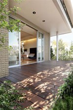 また、家の中に入ってくる暑さを和らげるため、庭に植栽を配し、テラスなどに木陰を造る「クールスポット」をお客さまに提案します。この「クールスポット」は、風の流れを創るだけでなく、家の外と内をつなぐゾーンとして、近隣の視線や音をほどよく遮ることもできる空間です。 |