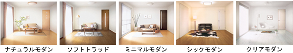 (2)インテリア ご入居者の要望に幅広く対応するため、ご入居者の嗜好とニーズに合わせた5つのデザインスタイルをご用意しました。