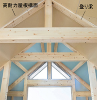 ※2. 地震力や風圧力に対して高い剛性を発揮し、加えて、大屋根や大きな吹き抜けの勾配天井などの提案ができる構造材。 |